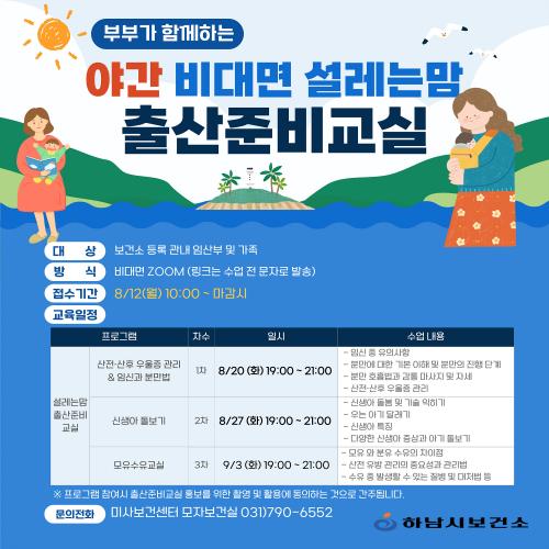 [½Åµ¿¾Æ¹æ¼Û=À̽ŵ¿±âÀÚ] Çϳ²½Ã(½ÃÀå ÀÌÇöÀç)´Â ³·¿¡ ½Ã°£À» ³»±â ¾î·Á¿î ¸Â¹úÀÌ ºÎºÎ¸¦ À§ÇÑ ¡¸¼³·¹´Â¸¾ Ãâ»êÁغñ±³½Ç¡¹ ÇÁ·Î±×·¥À» ¿À´Â 8¿ù¡¤9¿ù Àú³á ½Ã°£´ë ºñ´ë¸é ¹æ½ÄÀ¸·Î ¿î¿µÇÑ´Ù. ¡¸¼³·¹´Â¸¾ Ãâ»êÁغñ±³½Ç¡¹Àº »êÀü¡¤»êÈÄ °ü¸® ´É·ÂÀ» ³ô¿© Ãâ»ê¡¤À°¾Æ¿¡¡¦