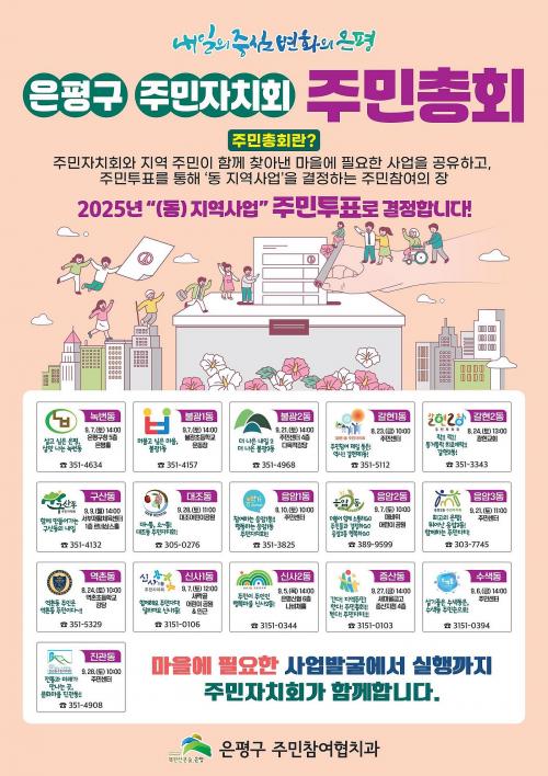 [½Åµ¿¾Æ¹æ¼Û=À̽ŵ¿±âÀÚ] ÀºÆò±¸(±¸Ã»Àå ±è¹Ì°æ)´Â 2025³â µ¿ Áö¿ª»ç¾÷ ¼±Á¤À» À§ÇÑ ¡®2024³â ÀºÆò±¸ ÁÖ¹ÎÀÚġȸ µ¿ ÁÖ¹ÎÃÑȸ¡¯¸¦ Áö³­ 10ÀÏ ÀÀ¾Ï1µ¿À» ½ÃÀÛÀ¸·Î ³»´Þ 28ÀϱîÁö ÃÑ 16°³ µ¿ÀÌ ¼øÂ÷ÀûÀ¸·Î °³ÃÖÇÑ´Ù°í ¹àÇû´Ù. ÀºÆò±¸ 16°³ µ¿ ÁÖ¹ÎÀÚġȸ´Â ¿ÃÇØ »ó¹Ý±â¡¦