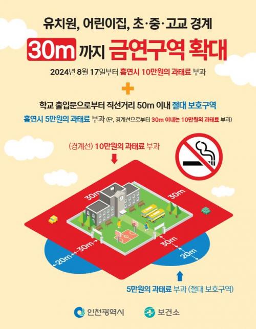 [½Åµ¿¾Æ¹æ¼Û ÀÎõ= À±¹Î½Ä±âÀÚ] ÀÎõ±¤¿ª½Ã´Â ±¹¹Î°Ç°­ÁõÁø¹ý °³Á¤À¸·Î 17ÀϺÎÅÍ À¯Ä¡¿ø, ¾î¸°ÀÌÁý, ÃÊ‧Áß‧°íµîÇб³ ½Ã¼³ÀÇ ±Ý¿¬ ±¸¿ªÀÌ È®´ëµÈ´Ù°í ¹àÇû´Ù. À̹ø °³Á¤À¸·Î ±âÁ¸¿¡ ½Ã¼³ °æ°è¼±À¸·ÎºÎÅÍ 10¹ÌÅÍ À̳»¿´´ø ±Ý¿¬ ±¸¿ªÀÌ 30¹ÌÅÍ À̳»·Î È®´ë¡¦