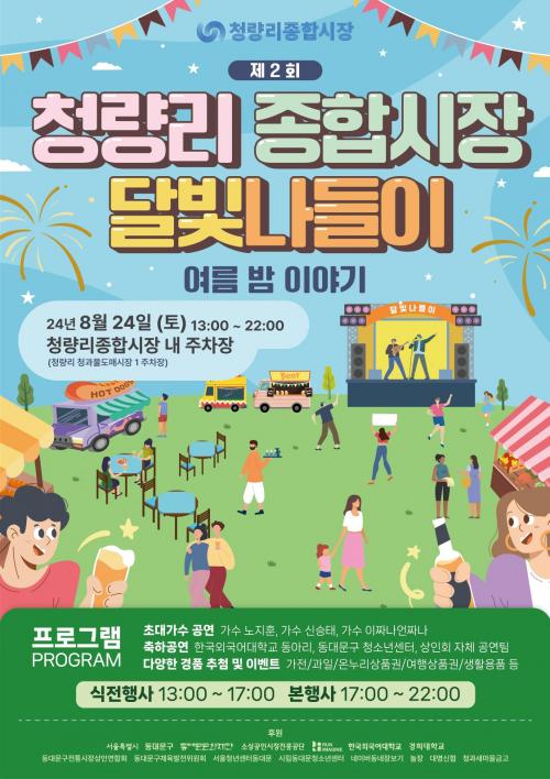 [½Åµ¿¾Æ¹æ¼Û=À̽ŵ¿±âÀÚ] ¼­¿ï µ¿´ë¹®±¸(±¸Ã»Àå ÀÌÇÊÇü)´Â ¿À´Â 24ÀÏ(Åä) ¿ÀÈÄ 1½ÃºÎÅÍ 10½Ã±îÁö û·®¸®Á¾ÇÕ½ÃÀå»óÀÎȸ°¡ ÁÖÃÖÇÏ´Â Á¦2ȸ ¡®Ã»·®¸®Á¾ÇÕ½ÃÀå ´Þºû³ªµéÀÌ¡¯ ÃàÁ¦°¡ ¿­¸°´Ù°í ¹àÇû´Ù. û·®¸® ÀüÅë½ÃÀå Ȱ¼ºÈ­¸¦ µµ¸ðÇÏ°í ¹®È­¿¹¼úÀÇ ÀåÀ» ¸¶·ÃÇϱâ À§ÇØ ¡¦