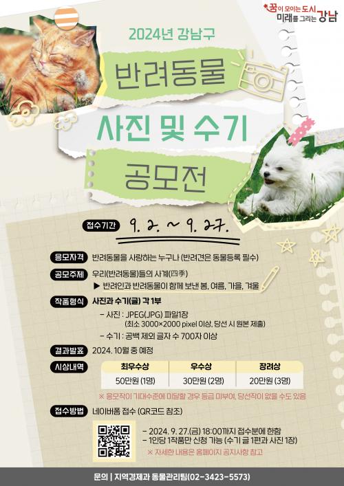 [½Åµ¿¾Æ¹æ¼Û=À̽ŵ¿±âÀÚ]²ÞÀÌ ¸ðÀÌ´Â µµ½Ã, ¹Ì·¡¸¦ ±×¸®´Â °­³²±¸(±¸Ã»Àå Á¶¼º¸í)°¡ ¼º¼÷ÇÑ ¹Ý·Áµ¿¹° ¹®È­ Á¶¼ºÀ» À§ÇØ ¡®°­³²±¸ ¹Ý·Áµ¿¹° »çÁø ¹× ¼ö±â °ø¸ðÀü¡¯À» °³ÃÖÇϰí, 9¿ù 2ÀϺÎÅÍ 27ÀÏ(18½Ã)±îÁö ÀÛǰÀ» Á¢¼öÇÑ´Ù. ¿ÃÇØ·Î 5ȸ° ¸Â´Â °ø¸ðÀüÀº ¡®¹Ý·ÁÀΰú ¡¦