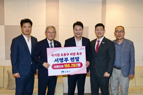 [½Åµ¿¾Æ¹æ¼Û=À̽ŵ¿±âÀÚ] µµºÀ±¸(±¸Ã»Àå ¿À¾ð¼®)´Â 9¿ù 3ÀÏ ¿©Àǵµ ±¹È¸ÀÇ»ç´çÀ» ¹æ¹®, À¯ÀÎÃÌ ¹®È­Ã¼À°°ü±¤ºÎ Àå°üÀ» ¸¸³ª ±¹±â¿ø µµºÀ±¸ ÀÌÀüÃ˱¸ ¼­¸íºÎ¸¦ Àü´ÞÇß´Ù. Àü´Þ½Ä¿¡´Â ¿À¾ð¼® µµºÀ±¸Ã»Àå, ¼­¸íÃßÁøÀ§ °øµ¿À§¿øÀåÀÌ Âü¼®ÇßÀ¸¸ç, µµºÀ°© ±èÀç¼· ±¹È¸ÀÇ¿øµµ¡¦