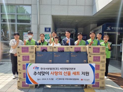 [½Åµ¿¾Æ¹æ¼Û ÀÎõ= À±¹Î½Ä±âÀÚ] Çѱ¹¼­ºÎ¹ßÀü(ÁÖ) ¼­ÀÎõ¹ßÀüº»ºÎ(º»ºÎÀå ¹éâ±Õ)´Â Áö³­ 9ÀÏ Ã»¶ó3µ¿(µ¿Àå °íÀº¼±)À» ã¾Æ ´Ù°¡¿À´Â Ãß¼®À» ¸ÂÀÌÇÏ¿© °ü³» ¾î·Á¿î ÀÌ¿ô¿¡°Ô Áö¿øÇØ ´Þ¶ó¸ç 300¸¸¿ø »ó´çÀÇ ¸íÀý ¼±¹°¼¼Æ® 80°³¸¦ ±âŹÇß´Ù. À̹ø¿¡ Àü´ÞµÈ ÈÄ¿ø¹°Ç°¡¦