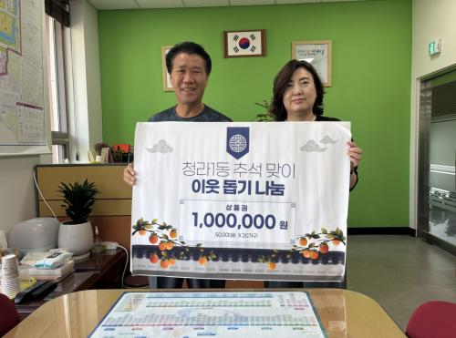 [½Åµ¿¾Æ¹æ¼Û ÀÎõ= À±¹Î½Ä±âÀÚ] û¶ó1µ¿ Áö¿ª»çȸº¸ÀåÇùÀÇü(¹Î°£À§¿øÀå Á¤°æ¿ë, °ø°øÀ§¿øÀå °­¹Ì¾Ö)´Â 10ÀÏ Ãß¼® ¸íÀýÀ» ¸ÂÀÌÇÏ¿© °ü³» Àú¼Òµæ °¡Á¤ ¹× Ãë¾à °¡±¸ ´ë»óÀ¸·Î 100¸¸¿ø »ó´çÀÇ Ãß¼® ¸ÂÀÌ »óǰ±ÇÀ» Àü´ÞÇß´Ù. À̳¯ Çà»ç´Â °ü³»¿¡ ¾î·Á¿î ÀÌ¿ôµéÀÌ µû¶æ¡¦