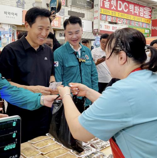 [½Åµ¿¾Æ¹æ¼Û=ÀÌ¿ø¼º±âÀÚ] ¿À¼¼ÈÆ ¼­¿ï½ÃÀå°ú ¿À¾ð¼® µµºÀ±¸Ã»ÀåÀÌ 9¿ù 13ÀÏ Ã¢µ¿½Åâ½ÃÀå°ú ⵿°ñ¸ñ½ÃÀåÀ» ã¾Ò´Ù. À̳¯ ¿À ½ÃÀå°ú ¿À ±¸Ã»ÀåÀº ½ÃÀåÀ» ¹æ¹®ÇÑ Áֹεé°ú ¼ÒÅëÇϸç Á÷Á¢ ÀåÀ» ºÃ´Ù. ¶Ç ¾î·Á¿î °æÁ¦ »óȲ µîÀ¸·Î Èûµç »óÀεéÀ» °Ý·ÁÇß´Ù. ÇÑÆí À̳¯ ¿À¡¦
