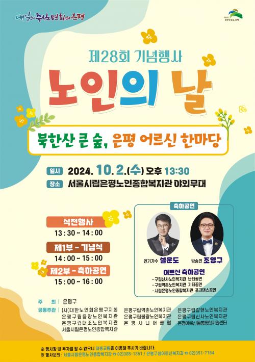 [½Åµ¿¾Æ¹æ¼Û ÀºÆò±¸=À̽ŵ¿±âÀÚ]ÀºÆò±¸(±¸Ã»Àå ±è¹Ì°æ)´Â ³»´Þ 2ÀÏ ½Ã¸³ÀºÆò³ëÀÎÁ¾ÇÕº¹Áö°ü¿¡¼­ ¡®Á¦28ȸ ³ëÀÎÀÇ ³¯ ±â³äÇà»ç¡¯¸¦ °³ÃÖÇÑ´Ù°í ¹àÇû´Ù. À̹ø ±â³äÇà»ç´Â 10¿ù 2ÀÏ ¡®³ëÀÎÀÇ ³¯¡¯À» ¸Â¾Æ ³ëÀÎ °ø°æÀÇ Àǹ̸¦ ´õ ±íÀÌ ÀÌÇØÇÏ°í ±â³äÇϰíÀÚ ¸¶·ÃµÆ´Ù. ÀÌ¡¦