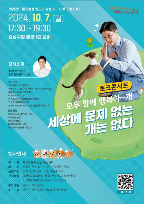 [½Åµ¿¾Æ¹æ¼Û °­³²±¸=À̽ŵ¿±âÀÚ]°­³²±¸°¡ ÇູÇÑ ¹Ý·Á°ß ¹®È­¸¦ ¸¸µé±â À§ÇØ 10¿ù°ú 11¿ù ´Ù¾çÇÑ Çà»ç¸¦ ÁغñÇß´Ù. 10¿ù 7ÀÏ¿¡´Â ¼³Ã¤Çö ¼öÀÇ»ç ÃÊû °­¿¬À» ÁøÇàÇϸç, 10¿ù 12¿ùºÎÅÍ 3Â÷·Ê¿¡ °ÉÃÄ ¹Ý·Áµ¿¹° ¼øÈ¸ ³îÀÌÅ͸¦ ¿î¿µÇÑ´Ù. 7ÀÏ 17½Ã 30ºÐºÎÅÍ 19½Ã 30ºÐ±î¡¦