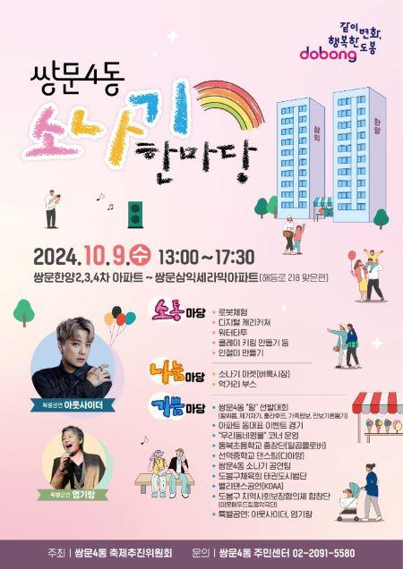 [½Åµ¿¾Æ¹æ¼Û µµºÀ±¸=À̽ŵ¿±âÀÚ] µµºÀ±¸(±¸Ã»Àå ¿À¾ð¼®) ½Ö¹®4µ¿ÀÌ 10¿ù 9ÀÏ 2024³â ½Ö¹®4µ¿ ¼Ò¡¤³ª¡¤±â ÇѸ¶´çÀ» °³ÃÖÇÑ´Ù. ÃàÁ¦´Â ÇѾç2¡¤3¡¤4Â÷ ¾ÆÆÄÆ®~½Ö¹®2µ¿ »ïÀͼ¼¶ó¹Í¾ÆÆÄÆ®¿¡¼­ ÁøÇàµÈ´Ù. ¿ÃÇØ 10ȸ¸¦ ¸ÂÀº ¼Ò¡¤³ª¡¤±â ÇѸ¶´ç(ÃàÁ¦ÃßÁøÀ§¿øÈ¸ À§¿øÀå ±è³²Èñ¡¦
