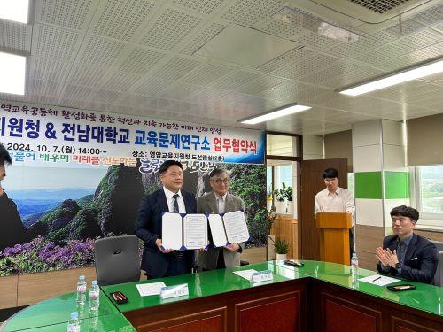 [½Åµ¿¾Æ¹æ¼Û ¿µ¾Ï±º=À̽ŵ¿±âÀÚ] 2024³â 10¿ù 7ÀÏ, ¿µ¾Ï±³À°Áö¿øÃ»°ú Àü³²´ëÇб³ ±³À°¹®Á¦¿¬±¸¼Ò´Â ¿µ¾Ï±³À°Áö¿øÃ» 2Ãþ ¼ÒȸÀǽǿ¡¼­ Áö¿ª±³À°°øµ¿Ã¼ Ȱ¼ºÈ­¸¦ À§ÇÑ ¾÷¹«Çù¾àÀ» ü°áÇß´Ù. ÀÌ Çù¾àÀº ¿µ¾Ï °ü³» ÇлýµéÀÇ Ã¢ÀǼº°ú ¹®Á¦ ÇØ°á ´É·ÂÀ» Çâ»ó½Ã۰í, Áö¿ª»çȸ¡¦