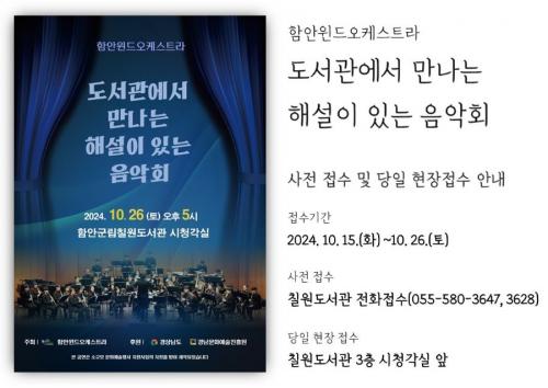 [½Åµ¿¾Æ¹æ¼Û ö¿ø±º=À̽ŵ¿±âÀÚ] ÇԾȱº¸³ Ä¥¿øµµ¼­°üÀº ¿À´Â 26ÀÏ ¿ÀÈÄ 5½Ã µµ¼­°ü 3Ãþ ½Ãû°¢½Ç¿¡¼­ ¡®µµ¼­°ü¿¡¼­ ¸¸³ª´Â ÇØ¼³ÀÌ ÀÖ´Â À½¾Çȸ¡¯¸¦ ¹«·á·Î °³ÃÖÇÑ´Ù°í ¹àÇû´Ù. ÇÔ¾ÈÀ©µå¿ÀÄɽºÆ®¶ó°¡ ÁÖÃÖÇϰí ÇԾȱº°ú Ä¥¿øµµ¼­°üÀÌ ÈÄ¿øÇÏ´Â À½¾Çȸ´Â Áö¿ª Áֹε顦