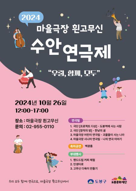 [½Åµ¿¾Æ¹æ¼Û µµºÀ±¸=À̽ŵ¿±âÀÚ] µµºÀ±¸(±¸Ã»Àå ¿À¾ð¼®) µµºÀ¹®È­Àç´ÜÀÌ ¿À´Â 10¿ù 26ÀÏ ¸¶À»±ØÀå Èò°í¹«½Å 2Ãþ ¼ö °ø¿¬Àå¿¡¼­ ÁֹΠÂü¿©Çü °ø¿¬¿¹¼úÇà»ç ¡®¼ö¾È¿¬±ØÁ¦: ¿ì¸®, ÇÔ²², ¸ðµÎ¡¯¸¦ °³ÃÖÇÑ´Ù. ¼ö¾È¿¬±ØÁ¦´Â µ¶¸³¿îµ¿°¡ ¼ö¾È(âÄäÌ) °èÈÆÁ¦ ¼±»ýÀÇ ¿¾ ÁýÅÍ¿¡¡¦