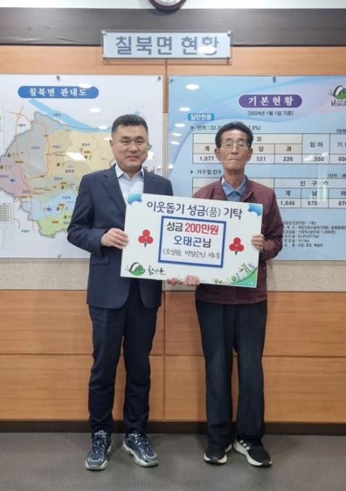 [½Åµ¿¾Æ¹æ¼Û °æ³²ÇÔ¾È=À̽ŵ¿±âÀÚ] ÇԾȱº Ä¥ºÏ¸éÀº ¢ßÇö´ë¹Ìµð¾î¿¡À̽º ¿ÀÅÂ°ï ´ëÇ¥°¡ ¾î·Á¿î ÀÌ¿ôµ½±â ¼º±Ý 200¸¸ ¿øÀ» ±âŹÇß´Ù°í 16ÀÏ ¹àÇû´Ù. ¿ÀÅÂ°ï ´ëÇ¥´Â ´ëÇÑÀû½ÊÀÚ»ç °æ³²Áö»ç¸¦ ÅëÇØ¼­µµ ±âºÎȰµ¿À» À̾î¿À°í ÀÖÀ¸¸ç, À̹ø ±âŹÀº ºÎ¸ð(¿À»ó·ü¡¤¹Ú¾ç¼ø¡¦