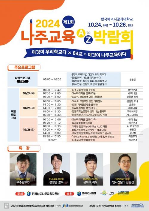 [½Åµ¿¾Æ¹æ¼Û ³ªÁÖ½Ã=À̽ŵ¿±âÀÚ] ³ªÁÖ±³À°Áö¿øÃ»ÀÌ ÁÖÃÖÇÏ´Â Á¦1ȸ ³ªÁÖ±³À° ¹Ú¶÷ȸ°¡ ¿À´Â 2024³â 10¿ù 24ÀÏ(¸ñ)ºÎÅÍ 10¿ù 26ÀÏ(Åä)±îÁö 3Àϰ£ Çѱ¹¿¡³ÊÁö°ø°ú´ëÇб³¿¡¼­ °³ÃֵȴÙ. ¡®À̰ÍÀÌ ¿ì¸®Çб³ÀÌ´Ù ¡¿ 64±³ = À̰ÍÀÌ ³ªÁÖ±³À°ÀÌ´Ù¡¯¸¦ ÁÖÁ¦·Î ÇÑ À̹ø ¹Ú¶÷ȸ´Â¡¦