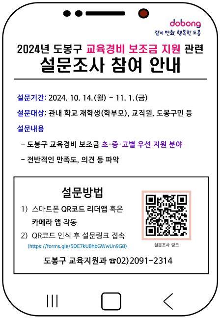 [½Åµ¿¾Æ¹æ¼Û µµºÀ±¸=À̽ŵ¿±âÀÚ] µµºÀ±¸(±¸Ã»Àå ¿À¾ð¼®)°¡ 11¿ù 1ÀϱîÁö ¡®±³À°°æºñ º¸Á¶±Ý Áö¿ø¿¡ °üÇÑ ¼³¹®Á¶»ç¡¯¸¦ ½Ç½ÃÇÑ´Ù. °ø±³À°À» °­È­ÇÏ°í ³»½ÇÀÖ´Â ±³À° ȯ°æÀ» Á¶¼ºÇϱâ À§Çؼ­´Ù. ¼³¹®Á¶»ç´Â ¿Â¶óÀÎÀ¸·Î ÁøÇàµÇ¸ç, µµºÀ±¸ ±³À°°æºñ º¸Á¶»ç¾÷ Áö¿ø ¹æÇ⠹ס¦