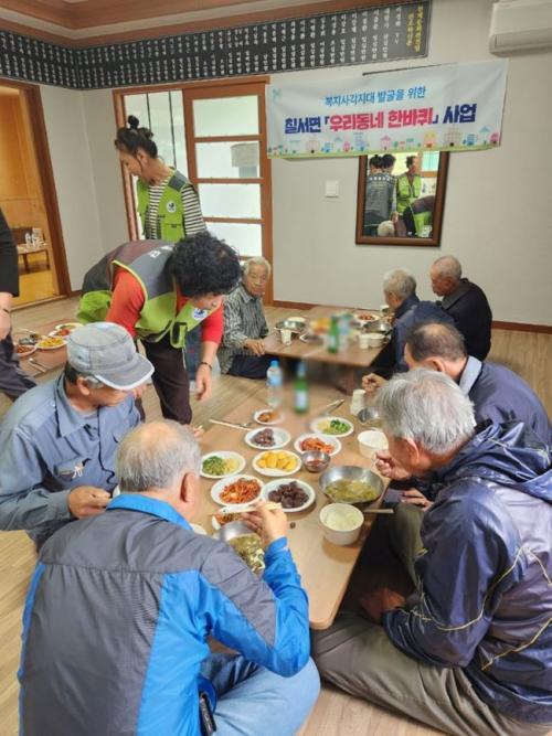 [½Åµ¿¾Æ¹æ¼Û °æ³²ÇÔ¾È=À̽ŵ¿±âÀÚ] ÇԾȱº Ä¥¼­¸éÀº 21ÀÏ Ã»°è¸¶À» ȸ°ü¿¡¼­ Ä¥¼­¸é ¸í¿¹»çȸº¹Áö°ø¹«¿ø°ú ÇÔ²²ÇÏ´Â ¡®¿ì¸® µ¿³× ÇѹÙÄû¡¯ »ç¾÷À» ½Ç½ÃÇß´Ù°í ¹àÇû´Ù. ¡®¿ì¸® µ¿³× ÇѹÙÄû¡¯ »ç¾÷Àº Ä¥¼­¸é¿¡ ¼ÒÀçÇÑ ¼¼ÁøF&S¿¡¼­ ÈÄ¿øÇÏ´Â À½½ÄÀ» ¸í¿¹»çȸº¹Áö°ø¹«¿øµé¡¦