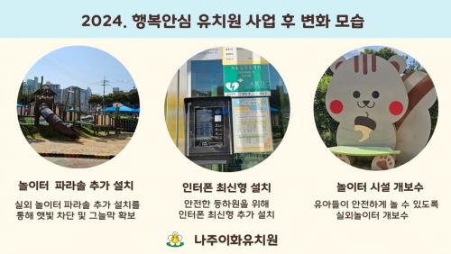 [½Åµ¿¾Æ¹æ¼Û ³ªÁÖ½Ã=À̽ŵ¿±âÀÚ] ³ªÁÖÀÌÈ­À¯Ä¡¿øÀº 2024Çг⵵ Àü¶ó³²µµ±³À°Ã»°ø¸ð»ç¾÷ ¡¸Çູ¾È½ÉÀ¯Ä¡¿ø¡¹À» ¿î¿µÇÏ¿© ¾ÈÀüÇÑ ±³À°È¯°æ Á¶¼ºÀ» ÅëÇØ À¯¾Æ¤ýÇкθð¤ý±³Á÷¿ø ±³À°°øµ¿Ã¼ ¸ðµÎ°¡ ¾È½ÉÇϰí ÇູÇÏ°Ô Áö³¾ ¼ö ÀÖ´Â ±³À°È¯°æÀ» ±¸ÃàÇÏ¿´´Ù. º»¿øÀº °³¿ø¡¦