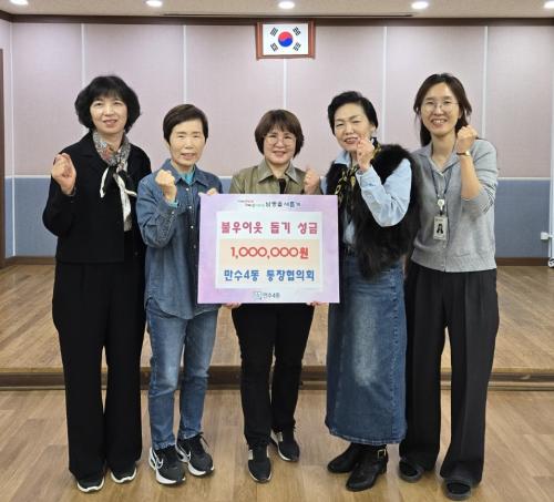 [½Åµ¿¾Æ¹æ¼Û ÀÎõ= À±¹Î½Ä±âÀÚ] ÀÎõ½Ã ³²µ¿±¸ ¸¸¼ö4µ¿ ÇàÁ¤º¹Áö¼¾ÅÍ´Â ÅëÀåÇùÀÇȸ(ȸÀå ±èÁ¤Èñ)·ÎºÎÅÍ »ç¶ûÀÇ ÀÌ¿ôµ½±â ÈÄ¿ø±Ý 100¸¸ ¿øÀ» ±âºÎ¹Þ¾Ò´Ù°í 1ÀÏ ¹àÇû´Ù. ÅëÀåÇùÀÇȸ´Â ¹ÙÀÚȸ ¼öÀͱݰú °øµ¿Ã¼ ¸ðÀÓÀ¸·Î Á÷Á¢ ¸¸µç ºñÁî°ø¿¹Ç°°ú ¼Õ¶ß°³ ¹°Ç°ÀÇ ÆÇ¸Å ¡¦
