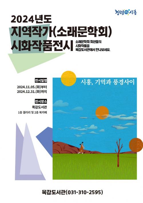 [½Åµ¿¾Æ¹æ¼Û ½ÃÈï½Ã=À̽ŵ¿±âÀÚ] ½ÃÈï½Ã ¸ñ°¨µµ¼­°üÀº ¼ö·ÁÇÑ ½ÃÈï ÁÖº¯ °æ°üÀ» ½Ã¿Í ±×¸²À¸·Î ±×·Á³½ ¼Ò·¡ ¹®ÇÐȸÀÇ 24Á¡ ½ÃÈ­ ÀÛǰÀ» ¸ñ°¨µµ¼­°ü 1Ãþ °¶·¯¸® ¹× 2Ãþ ºÏÄ«Æä¿¡ Àü½ÃÇÑ´Ù. Àü½Ã±â°£Àº 11¿ù 5ÀϺÎÅÍ 12¿ù 31ÀϱîÁö´Ù. ¼Ò·¡ ¹®ÇÐȸ´Â 1992³â¿¡ ½ÃÈï Áö¿ª¡¦