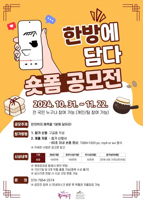 [½Åµ¿¾Æ¹æ¼Û µ¿´ë¹®±¸=À̽ŵ¿±âÀÚ] Çѹæ»ê¾÷Ư±¸ ¼­¿ï¾à·É½Ã¿¡ À§Ä¡ÇÑ µ¿´ë¹®±¸ ¼­¿ïÇѹæÁøÈï¼¾ÅͰ¡ ÇÑÀÇÇÐÀÇ °¡Ä¡¸¦ ¾Ë¸®´Â ¼ôÆû ¿µ»ó °ø¸ðÀü ¡®Çѹ濡 ´ã´Ù¡¯¸¦ °³ÃÖÇÑ´Ù. ¼ôÆû °ø¸ðÀü ¡®Çѹ濡 ´ã´Ù¡¯´Â ÇÑÀÇÇÐÀÇ ¿ì¼ö¼º°ú ¸Å·Â¿¡ ´ëÇÑ ´ëÁß °ü½ÉÀ» Á¦°íÇϰíÀÚ ±â¡¦