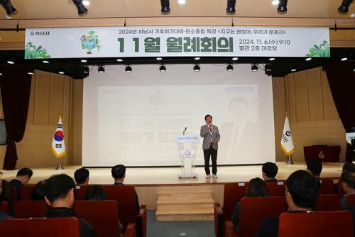 [½Åµ¿¾Æ¹æ¼Û Çϳ²½Ã=À̽ŵ¿±âÀÚ] Çϳ²½Ã°¡ 6ÀÏ °³ÃÖÇÑ ¿ù·ÊȸÀÇ¿¡¼­ ¡®È¯°æ°øÇÐÀÚ °ûÀç½Ä ¹Ú»ç¡¯¸¦ ÃÊÃ»ÇØ ¡¸Áö±¸´Â ±¦Âú¾Æ, ¿ì¸®°¡ ¹®Á¦Áö¡¹¸¦ ÁÖÁ¦·Î ±âÈÄÀ§±â ´ëÀÀ ¹× ź¼ÒÁ߸³¿¡ ´ëÇÑ Æ¯°­À» °¡Á³´Ù. °û ¹Ú»ç´Â ±âÈĺ¯È­°¡ ¿ì¸® »çȸ¿¡ ¾î¶² ¿µÇâÀ» ¹ÌÄ¡´ÂÁö ¼³¡¦
