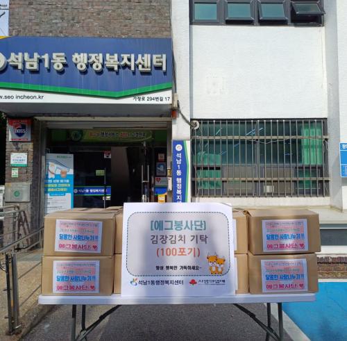 [½Åµ¿¾Æ¹æ¼Û ÀÎõ= À±¹Î½Ä±âÀÚ] Áö³­ 4ÀÏ ÀÎõ ¿¡±×ºÀ»ç´Ü(´ëÇ¥ ÃÖ»ó¾Æ)Àº ¼®³²1µ¿ Áö¿ª»çȸº¸ÀåÇùÀÇü(°øµ¿À§¿øÀå ¼ºÀ±ÁÖ, ¾çÀçÀº)¿¡ ±èÄ¡ 109°³¸¦ ÈÄ¿øÇß´Ù. ÃÖ»ó¾Æ ´ëÇ¥´Â ¡°20, 30´ë ÀþÀº »ç¶÷µéÀÌ ºÀ»ç¸¦ Çϱâ À§ÇØ ¸ð¿´´Ù. ¼®³²1µ¿¿¡ °ÅÁÖÇÏ´Â ¾î·Á¿î ºÐ¡¦