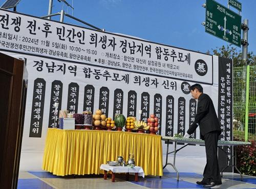 [½Åµ¿¾Æ¹æ¼Û °æ³²ÇÔ¾È=À̽ŵ¿±âÀÚ] ÇԾȱºÀº Áö³­ 5ÀÏ ¿ÀÀü 10½Ã ÇÔ¾È¸é ´ë»ê¸®¿¡ ¼ÒÀçÇÑ Çѱ¹ÀüÀï ÀüÈÄ ¹Î°£ÀÎ Èñ»ýÀÚ ¹é¿î°íºñ Ãß¸ð°ø¿ø¿¡¼­ °æ³²Áö¿ª ¹Î°£ÀÎÈñ»ýÀÚ ÇÕµ¿Ã߸ðÁ¦¸¦ ÁøÇàÇß´Ù. À̳¯ Ã߸ðÁ¦´Â ½ÅÁ¾¿ì °æ³²µµ º¹Áö¿©¼º±¹Àå, Çã´ë¾ç ÇԾȺ৬ö, À̸¸È£¡¦