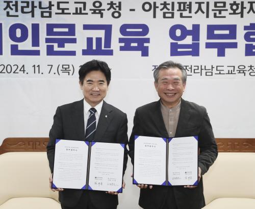 [½Åµ¿¾Æ¹æ¼Û Àü³²=À̽ŵ¿±âÀÚ] Àü¶ó³²µµ±³À°Ã»°ú ¾ÆÄ§ÆíÁö¹®È­Àç´ÜÀº 7ÀÏ Àü³²±³À°Ã» ºñÁî´Ï½º½Ç¿¡¼­ ¾÷¹«Çù¾àÀ» ¸Î°í, Àü³² µ¶¼­Àι®±³À° Ȱ¼ºÈ­¸¦ À§ÇØ ¼ÕÀ» Àâ¾Ò´Ù. À̹ø Çù¾àÀº ¡®Ã¥Àд Àü³²±³À°¡¯À» ¸ñÇ¥·Î µ¶¼­Àι®±³À°¿¡ Èû¾²°í ÀÖ´Â Àü¶ó³²µµ±³À°Ã»ÀÌ À¯°ü ¡¦