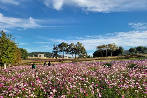 [½Åµ¿¾Æ¹æ¼ÛÀü³²¿©¼ö=±è±â³² ±âÀÚ] ¿Ï¿¬ÇÑ °¡À»ÀÇ Á¤Ã븦 ǰÀº ÆÄ¶õ Çϴðú ¿ï±ßºÒ±ß ¹°µç ÄÚ½º¸ð½º ±º¶ôÁö°¡ °¡Á· ³ªµéÀ̰´À» ¹Ý±â°í ÀÖ´Ù. ¿©¼ö ¼±»çÀ¯Àû°ø¿ø ³» ¾à 5,000§³ÀÇ À¯ÈÞ°ø°£¿¡ Á¶¼ºµÈ ²É¹çÀº ȭâÇÑ °¡À» ³¯¾¾¿Í ¾î¿ì·¯Á® ÁÖº¯ °æ°üÀ» ´õ¿í È­»çÇÏ°Ô ¸¸¡¦