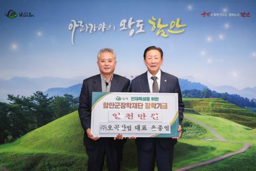 (ÁÖ)¿À°î»ê¾÷ À±Á¾¿­ ´ëÇ¥, ÇԾȱº ÀåÇÐÀç´Ü¿¡ ÀåÇбâ±Ý 1000¸¸ ¿ø ±âŹ