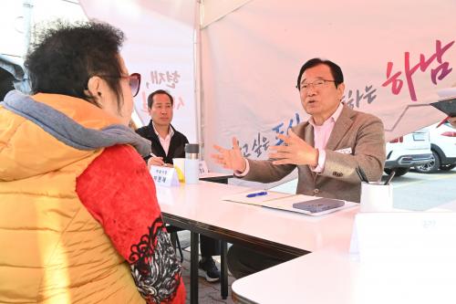 [½Åµ¿¾Æ¹æ¼Û Çϳ²½Ã=À̽ŵ¿±âÀÚ] Çϳ²½Ã´Â 13ÀÏ ¿øµµ½ÉÀÎ ½ÅÀ嵿¿¡¼­ ¿­¸° Á¦13ȸ À̵¿½ÃÀå½Ç¿¡¼­ Áö¿ª ¹Î¿ø ÇØ°áÀ» À§ÇØ ÁֹΠÀǰßÀ» ûÃëÇß´Ù. À̵¿½ÃÀå½ÇÀº ÀÌÇöÀç ½ÃÀåÀÌ Á÷Á¢ ±Ç¿ªº° ½Ã¹Îµé°ú ¸¸³ª Áö¿ªÀÇ ¹®Á¦¸¦ °°ÀÌ °í¹ÎÇϰí ÇöÀå¿¡¼­ ÇØ°á ¹æ¾ÈÀ» ã´Â ÇöÀ塦