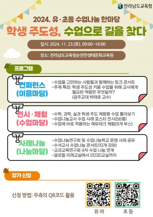 [½Åµ¿¾Æ¹æ¼Û Àü³²¼øÃµ=À̽ŵ¿±âÀÚ] Àü¶ó³²µµ±³À°Ã»ÀÌ 23ÀÏ Àü¶ó³²µµ±³À°Ã»¼øÃµ¸¸»ýŹ®È­±³À°¿ø¿¡¼­ ¡®2024. À¯¡¤ÃÊµî ¼ö¾÷³ª´® ÇѸ¶´ç¡¯À» °³ÃÖÇÑ´Ù. À̹ø Çà»ç´Â ¡®Çлý ÁÖµµ¼º, ¼ö¾÷À¸·Î ±æÀ» ã´Ù¡¯¸¦ ÁÖÁ¦·Î, Çлý ÁÖµµ¼º Ű¿ò ¼ö¾÷ ³ª´®°ú Àü³²±³À°ÀÌ ³ª¾Æ°¡¾ß¡¦