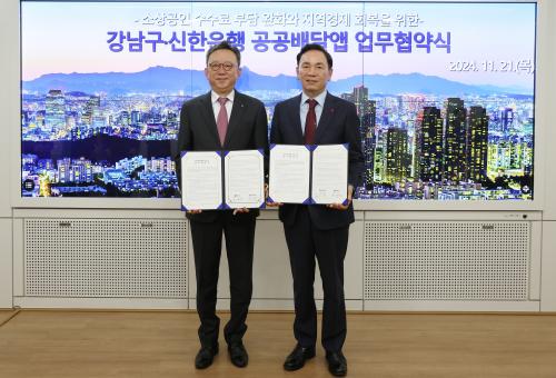 [½Åµ¿¾Æ¹æ¼Û °­³²±¸=À̽ŵ¿±âÀÚ] ²ÞÀÌ ¸ðÀÌ´Â µµ½Ã, ¹Ì·¡¸¦ ±×¸®´Â °­³²±¸°¡ 21ÀÏ ±¸Ã»¿¡¼­ ½ÅÇÑÀºÇà°ú °ø°ø¹è´Þ¾Û ¡®¶¯°Ü¿ä¡¯ ¿î¿µÀ» À§ÇÑ ¾÷¹«Çù¾àÀ» ü°áÇß´Ù. ÃÖ±Ù À¯¸í ¹è´Þ Ç÷§ÆûµéÀÌ ±âÁ¸ÀÇ ³ôÀº Áß°³ ¼ö¼ö·á¸¦ ÀϺΠ³·Ãß¸ç »ó»ý ¹æ¾ÈÀ» ³íÀÇÇÏ´Â °¡¿îµ¥, °­¡¦