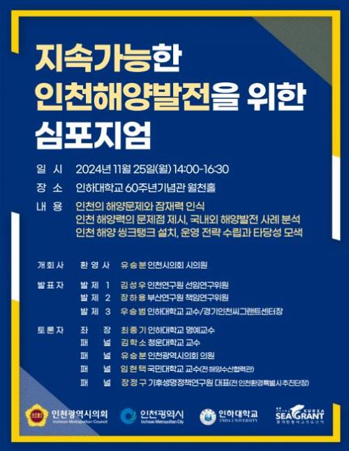[½Åµ¿¾Æ¹æ¼Û ÀÎõ= À±¹Î½Ä±âÀÚ] ÀÎõ±¤¿ª½Ã(½ÃÀå À¯Á¤º¹)´Â 11¿ù 25ÀÏ ÀÎÇÏ´ëÇб³ 60ÁÖ³â±â³ä°ü(¿ùõȦ)¿¡¼­ ¡®Áö¼Ó°¡´ÉÇÑ ÀÎÃµÇØ¾ç¹ßÀüÀ» À§ÇÑ ½ÉÆ÷Áö¾ö¡¯À» °³ÃÖÇÑ´Ù. À̹ø Çà»ç´Â ÀÎõ½Ã, ÀÎõ½ÃÀÇȸ, ÀÎÇÏ´ëÇб³(°æÀξ¾±×·»Æ®¼¾ÅÍ)°¡ °øµ¿ ÁÖÃÖÇϸç, Áö¿ª Àü¹®¡¦