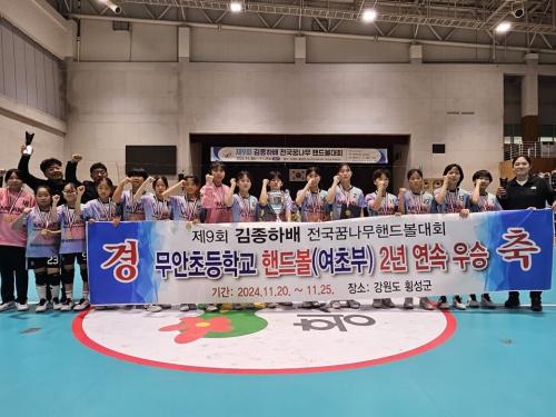 [½Åµ¿¾Æ¹æ¼Û Àü³²¹«¾È=À̽ŵ¿±âÀÚ] ¹«¾ÈÃʵîÇб³ Çڵ庼ºÎ(¿©ÃʺÎ)´Â 2024³â 11¿ù 20ÀϺÎÅÍ 11¿ù 25ÀϱîÁö °­¿øµµ Ⱦ¼º±º¿¡¼­ °³ÃÖµÈ Á¦9ȸ ±èÁ¾ÇϹè Àü±¹²Þ³ª¹«Çڵ庼´ëȸ¿¡¼­ ¿ì½ÂÀÇ ¿µ±¤À» ¾È¾Ò´Ù. 2023³â Á¦8ȸ ´ëȸ¿¡ À̾î 2³â ¿¬¼ÓÀ¸·Î ¿ì½ÂÀ» Â÷ÁöÇÏ¸ç ¹«¾ÈÃʵ