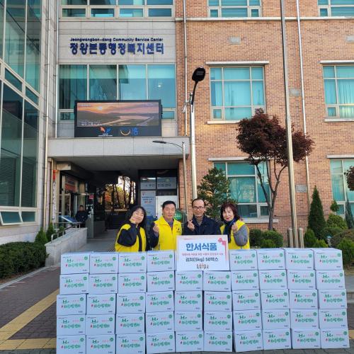 [½Åµ¿¾Æ¹æ¼Û ½ÃÈï½Ã=À̽ŵ¿±âÀÚ] ½ÃÈï½Ã Á¤¿Õº»µ¿¿¡ ÀÖ´Â ¢ßÇѼ­½ÄǰÀÌ Áö³­´Þ¿¡ À̾î ÀÌ´Þ 22ÀÏ¿¡µµ Á¤¿Õº»µ¿ ÇàÁ¤º¹Áö¼¾ÅÍ¿¡ ¾î·Á¿î ÀÌ¿ôÀ» À§ÇØ ±èÄ¡(5kg) 50¹Ú½º ÈÄ¿øÇϸç Áö¿ª»çȸ¿¡ µû¶æÇÑ ³ª´®À» ½ÇõÇß´Ù. ¢ßÇѼ­½ÄǰÀº 2011³â ¼³¸³µÇ¾î 100% ±¹³»»ê Àç·á¸¦ ¡¦