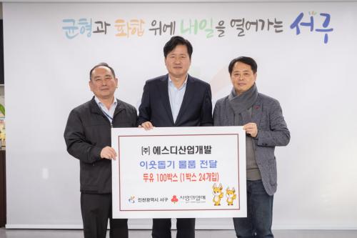 [½Åµ¿¾Æ¹æ¼Û ÀÎõ= À±¹Î½Ä±âÀÚ]ÀÎõ ¼­±¸(±¸Ã»Àå °­¹ü¼®)´Â Áö³­ 12¿ù 4ÀÏ, ¢ß¿¡½ºµð»ê¾÷°³¹ß(´ëÇ¥ ½ÅÈ­¼·)·ÎºÎÅÍ µÎÀ¯ 100¹Ú½º(1¹Ú½º 24°³ÀÔ)¸¦ Àü´Þ¹Þ¾Ò´Ù°í ¹àÇû´Ù. ¢ß¿¡½ºµð»ê¾÷°³¹ßÀº °æ±âµµ ÆÄÁֽÿ¡ À§Ä¡ÇÏ¸ç µµÀå °ø»ç, ¹Ì²ô·³¹æÁö Æ÷ÀåÀçµé »ê¾÷ ¹°Ç°À» ¡¦