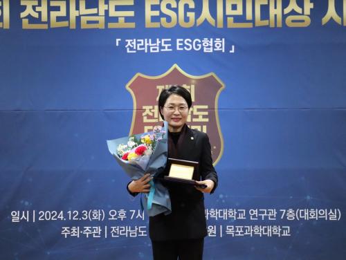 ¹Î´öÈñ ¿©¼ö½ÃÀÇ¿ø, Àü¶ó³²µµ ESGÇùȸ ½Ã¹Î ´ë»ó ¼ö»ó