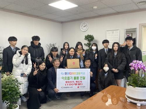 [½Åµ¿¾Æ¹æ¼Û ÀÎõ= À±¹Î½Ä±âÀÚ]ÀÎõ ¼­±¸(±¸Ã»Àå °­¹ü¼®)´Â 12¿ù 6ÀÏ ÀÎõµðÀÚÀΰíµîÇб³(±³Àå Á¤´ö±Ù)·ÎºÎÅÍ ÆÐµùÁ¶³¢¿Í ¸ñµµ¸® ¼¼Æ® 100¸íºÐÀ» Àü´Þ¹Þ¾Ò´Ù°í ¹àÇû´Ù. ÀÎõµðÀÚÀΰíµîÇб³ ÇлýµéÀº Çø®¸¶ÄÏÀ» ÅëÇÑ ¼öÀͱÝÀ» ÅëÇØ ¾î·Á¿î ÀÌ¿ôµéÀ» À§ÇÑ Á¶³¢ÆÐµù¡¦