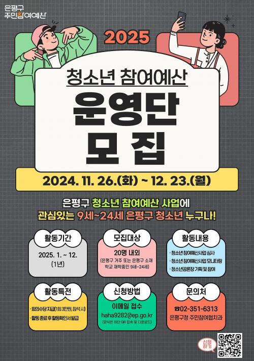 ÀºÆò±¸, ¡®2025³â û¼Ò³â Âü¿©¿¹»ê ¿î¿µ´Ü¡¯ ¸ðÁý