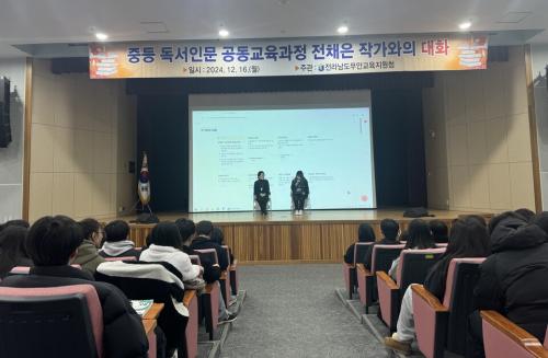 [½Åµ¿¾Æ¹æ¼Û Àü³²¹«¾È=À̽ŵ¿±âÀÚ] Àü¶ó³²µµ¹«¾È±³À°Áö¿øÃ»Àº Áö³­ 12¿ù 16ÀÏ, Àü³²¿©¼º°¡Á·Àç´Ü¿¡¼­ ¹«¾ÈÁßÇб³, ¹«¾ÈÇö°æÁßÇб³, ¸Á¿îÁßÇб³ ÇлýµéÀ» ´ë»óÀ¸·Î ¡¸Áßµî µ¶¼­Àι® °øµ¿±³À°°úÁ¤ ÀÛ°¡¿ÍÀÇ ´ëÈ­¡¹¸¦ ¼º°øÀûÀ¸·Î ÁøÇàÇß´Ù. ÀÌ Çà»ç´Â ÀüäÀº ÀÛ°¡ÀÇ ¡®¿Ö¡¦