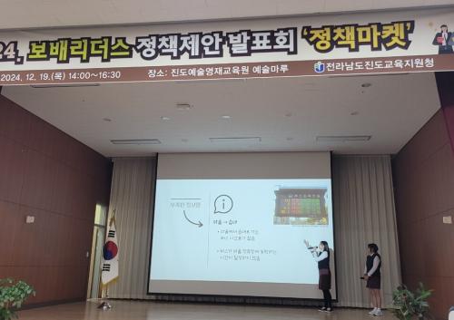 [½Åµ¿¾Æ¹æ¼Û Àü³²Áøµµ=À̽ŵ¿±âÀÚ] Àü¶ó³²µµÁøµµ±³À°Áö¿øÃ»Àº 12¿ù 19ÀÏ, Áøµµ ¿¹¼ú¿µÀç±³À°¿ø ¿¹¼ú¸¶·ç¿¡¼­ Áøµµ °ü³» ÃÊ¡¤Áß¡¤°íµîÇб³ Çлýȸ°¡ Âü¿©ÇÏ´Â Á¤Ã¥Á¦¾È ¹ßǥȸ ¡¸Á¤Ã¥¸¶ÄÏ¡¹ Çà»ç¸¦ ¼ºÈ²¸®¿¡ °³ÃÖÇß´Ù. À̹ø Á¤Ã¥¸¶ÄÏ¿¡´Â °¢ Çб³¿¡¼­ Á¦ÃâÇÑ Á¤Ã¥ Á¦¡¦