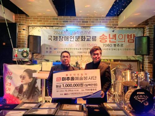 [½Åµ¿¾Æ¹æ¼Û ÀÎõ= À±¹Î½Ä±âÀÚ] ÀÎõ½Ã ³²µ¿±¸´Â ÃÖ±Ù ¿­¸° ¡®±¹Á¦Àå¾ÖÀι®È­±³·ù ¼Û³âÀÇ ¹ã¡¯ Çà»ç¿¡¼­ ¹ÌÃßȦ¿¹¼úºÀ»ç´Ü(´ÜÀå ±è°©¼ö)À¸·ÎºÎÅÍ ÀÌ¿ôµ½±â ÈÄ¿ø±Ý 100¸¸ ¿øÀ» ±âŹ¹Þ¾Ò´Ù°í 23ÀÏ ÀüÇß´Ù. ¼º±ÝÀº ¸ÅÁÖ Àå¼öµ¿ ¸¸Àǰñ¿¡¼­ ÁøÇàÇÏ´Â ¹ö½ºÅ· ¼öÀͱÝÀ¸·Î¡¦