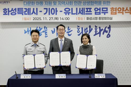 [½Åµ¿¾Æ¹æ¼Û=ÀÌÀçö±âÀÚ] È­¼ºÆ¯·Ê½Ã°¡ 27ÀÏ ½Ãû Áß¾ÓȸÀǽǿ¡¼­ À¯´Ï¼¼ÇÁ Çѱ¹À§¿øÈ¸, ±â¾Æ ÁÖ½Äȸ»ç¿Í ¡®´Ù¹®È­¾Æµ¿ Áö¿ø ¹× Áö¿ª»çȸ ¹Î°ü »ó»ý Çù·ÂÀ» À§ÇÑ ¾÷¹«Çù¾à¡¯À» ü°áÇß´Ù. À̳¯ Çù¾àÀº UN¾Æµ¿±Ç¸®Çù¾à¿¡ ±Ù°ÅÇØ ´Ù¹®È­¾Æµ¿ÀÇ ±Ç¸®¸¦ ÁõÁøÇÏ°í ±³À°¡¤º¹¡¦