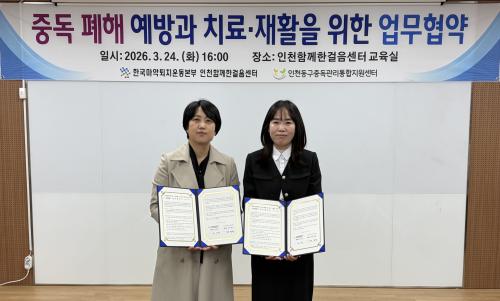 [½Åµ¿¾Æ¹æ¼Û ÀÎõ=À±¹Î½Ä±âÀÚ]¡à Çѱ¹¸¶¾àÅðÄ¡¿îµ¿º»ºÎ ÀÎõÇÔ²²ÇѰÉÀ½¼¾ÅÍ(ÁöºÎÀå ÃÖº´¿ø∣¼¾ÅÍÀå ÃÖ¼­¿¬)´Â 3¿ù 24ÀÏ, ÀÎõµ¿±¸Áßµ¶°ü¸®ÅëÇÕÁö¿ø¼¾ÅÍ¿Í ÇÔ²² ÀÎõ Áö¿ª ÁÖ¹ÎÀÇ Áßµ¶ ÆóÇØ ¿¹¹æ°ú Áßµ¶ÀÚÀÇ Ä¡·á¡¤ÀçȰ ¹× ȸº¹ Áö¿øÀ» À§ÇÑ ¾÷¹«Çù¾àÀ» ü°áÇß´Ù°í¡¦