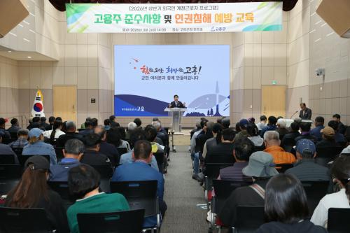 [½Åµ¿¾Æ¹æ¼Û Àü³²°íÈï=¹Ú±¤¿Á±âÀÚ] °íÈﱺ(±º¼ö °ø¿µ¹Î)Àº 26ÀÏ ±ºÃ» ¿ìÁÖȦ¿¡¼­ ¿Ü±¹ÀÎ °èÀý±Ù·ÎÀÚ Á¦µµÀÇ ¾ÈÁ¤Àû ¿î¿µÀ» À§ÇØ 2026³â »ó¹Ý±â °èÀý±Ù·ÎÀÚ ÇÁ·Î±×·¥ °í¿ëÁÖ ±³À°À» ½Ç½ÃÇϰí, ±Ù·Îȯ°æ °³¼±°ú À뱂 º¸È£¸¦ À§ÇÑ Áö¿ø ´ëÃ¥À» ÃßÁøÇϰí ÀÖ´Ù°í ¹àÇû´Ù. ¡¦